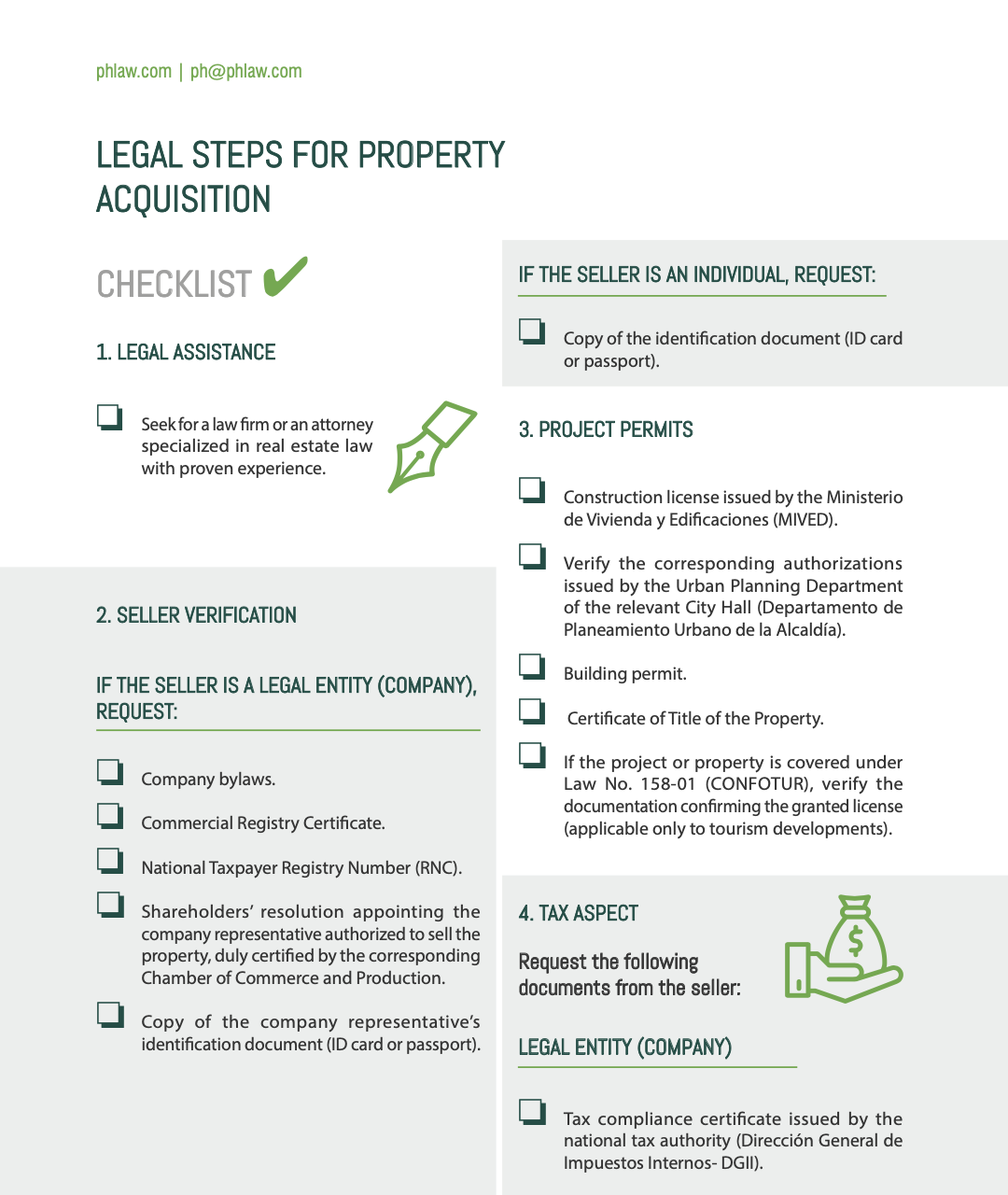 In this guide, Pellerano & Herrera provides a detailed checklist outlining the essential steps to ensure a safe and transparent real estate acquisition, guaranteeing that your investment is supported by a solid and trustworthy legal process.