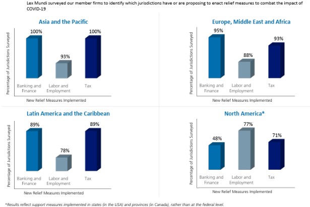 As governmental authorities formulate and roll-out new support measures intended to throw companies a lifeline, Lex Mundi has called upon its full-service member firms to provide a snapshot of the policies implemented and announced in 104 jurisdictions.